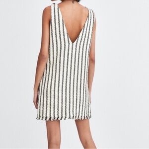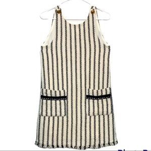 Zara TRF Collection Pinafore Tweed Fringe Striped Mini Shift Dress Size Small/4
