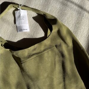 NWT never worn, gorgeous bag. Suede has a natural “napping” texture. Awesome quality. Underside of handle has very small indentation from hanging on a hook. Has since been stored off of the hook.