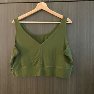 Discover comfort and style with this olive green bra. Has small cut in fabric (see photo).