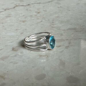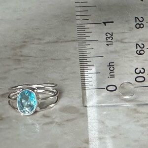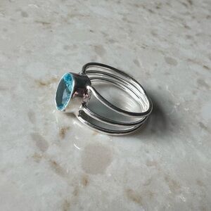 NWOT! Multifaceted blue topaz stone set in sterling silver. US size 7.