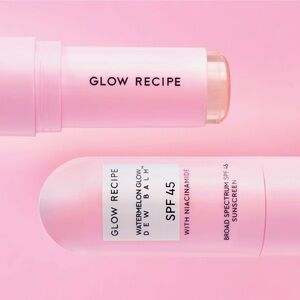 Glow Recipe Watermelon Glow Dew Balm with SPF 45. Features a pink hue. Perfect for sun protection and hydration.