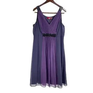 Boden Sleeveless Formal Chiffon Dress Size 14 100% Silk Purple Embellished Waist