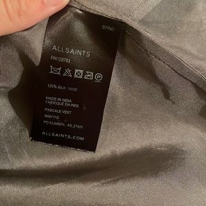 All Saints Hand Embellished Silk Blouse. Has some missing embellishments as shown. Armpit to armpit is approximately 18.5” and length is approximately 22”