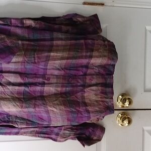 Style & Co purple blue tan electric Plaid Button-Up Shirt