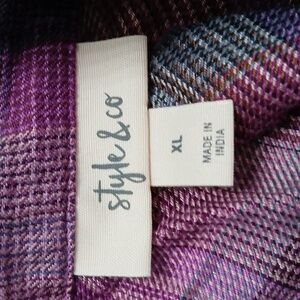 Style & Co purple blue tan electric Plaid Button-Up Shirt Sz XL NWT super soft