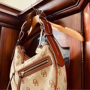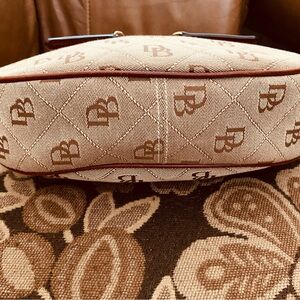 y2k Dooney & Bourke Brown Circle Hobo Shoulder Bag Large Allover Signature Logo
