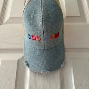 Stylish denim cap with colorful 'Dog Mom' embroidery. Perfect for casual wear.