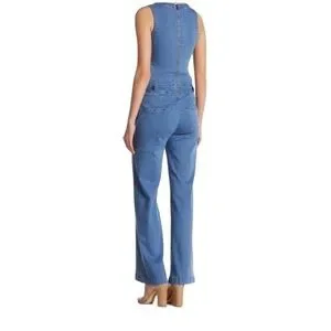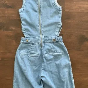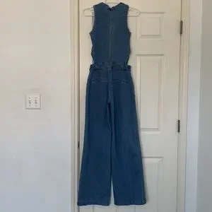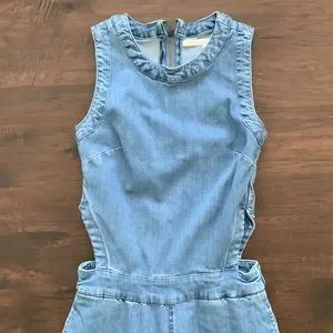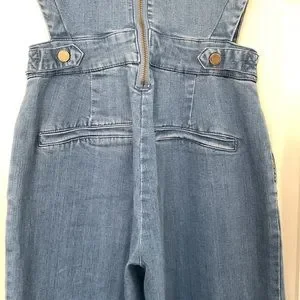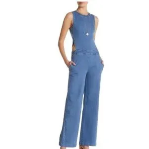 RACHEL ROY DENIM JUMPSUIT CUTOUT OVERALLS WIDE LEG LIGHT WASH