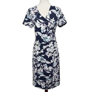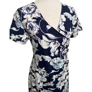 Soft Surroundings Shapely Anywhere Floral Ruched Dress Women’s Size Small Blue
