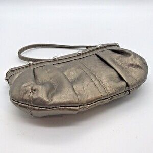 Gold Faux Leather Wristlet Purse Zip Closure Studs Lined Evening Bag Clutch