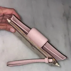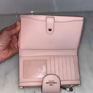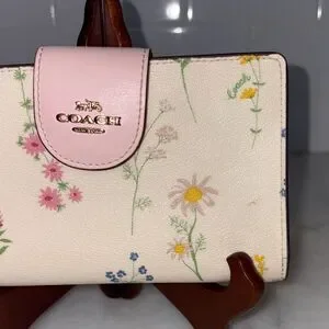 Coach Wallet Wristlet Floral Wildflower Saffiano Leather Phone Case Clutch Pink