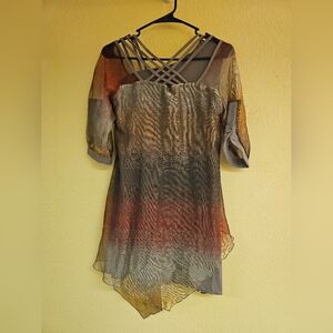 This elegant women's blouse features a unique asymmetrical design with a blend of rich colors. Perfect for adding a touch of sophistication to any outfit.