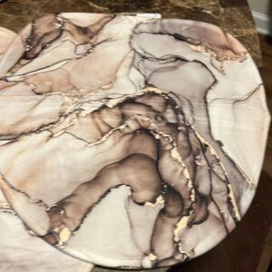 NWT Bathroom mat set. Bath mat is 29.5 long/17.7 wide, U shaped toilet mat is 16.5 long/14.9 wide and toilet seat cover 16.5long/14.9 wide. Very durable and beautiful pattern brand new in bag
