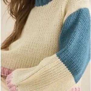 Chic and cozy knit sweater. Features cream, blue, and pink blocks. Perfect for casual wear. Retailed for 82 in store.
