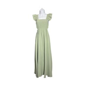 Sage Green Square Neck Ruffle Sleeve Maxi Dress Tie Back Cutout Summer Vacation