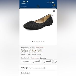 Dream Pairs Girls MUY-SHINE Flats Black Glitter Slip On Flats Size-4 NIB
