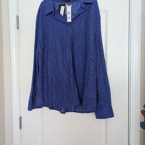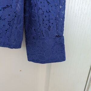 This elegant blue lace pant and blouse set offers a sophisticated look for any occasion. The intricate lace design adds a touch of luxury and style.