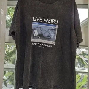 Live Weird Possum T Shirt Black Wash