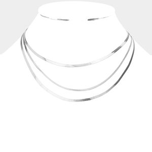 Silver Triple Layered Bib Herringbone Necklace Chain Snake Simple Chic Metal