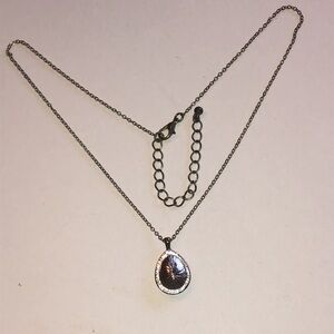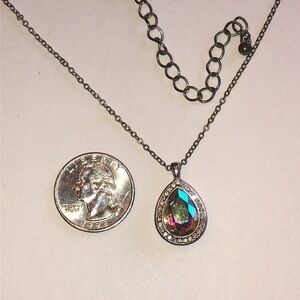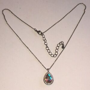 This elegant silver tone pendant necklace features a stunning multicolor teardrop design. Perfect for adding a touch of sophistication to any outfit.
