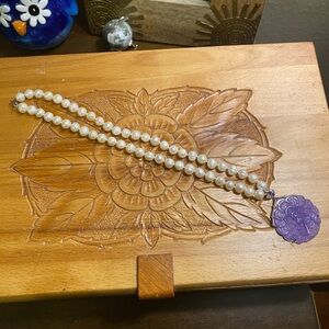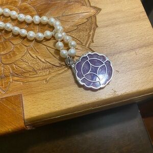 Sterling D’Joy carved amethyst and pearls Elegant Pendant Necklace