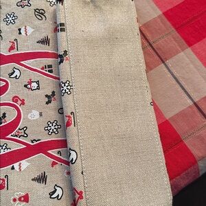 Brighton tote with 'Joy' print. Red accents on tan canvas. Perfect for festive outings.