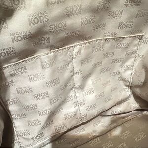 Classic and timeless Michael Kors large satchel crafted in durable saffiano leather. This structured bag features gold-tone hardware, dual rolled handles, and a secure top zip closure. Spacious interior with signature MK logo lining, interior zip pocket, and slip pockets.