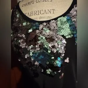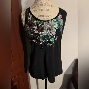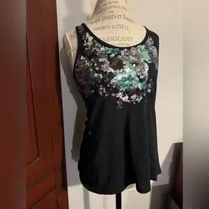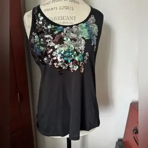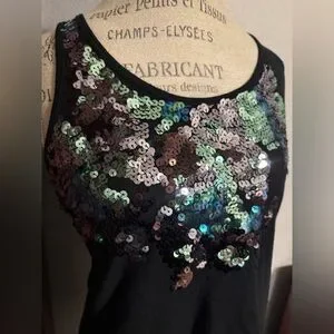 Elegant black tank with shimmering sequins. Ideal for evening wear.