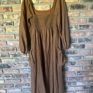 🩵Valley Collective Listiele Brown Womens Midi Maxi Dress Size Small Medium