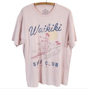 NEW WITHOUT TAGS - GOODIE TWO SLEEVES - Waikiki Surf Club Hawaii Retro 50s Surf Graphics & Embroidery Pink Vintage Wash Tee T-Shirt Tshirt Top Shirt. Unisex. Size Medium. Laid flat it measures approx. 22" armpit to armpit, 28" Top shoulder to hem, 11" Sleeve. Excellent NEW WITHOUT TAGS CONDITION. Smoke/ Pet free environment. Bundle purchases to save greatly on shipping! #15/7
