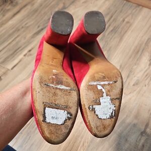 Size 9M In preowned condition. See each photo above for measurements and each angle and condition. Open to reasonable offer. Elevate your style with these striking red heels from Coach, crafted in a luxurious suede finish. These shoes combine elegance and comfort, making them perfect for both casual outings and formal events. The vibrant color adds a bold touch to any ensemble, ensuring you stand out in any crowd.