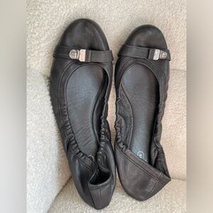 Coach black leather ballet flats NWOT no wear size 7 silver detailing