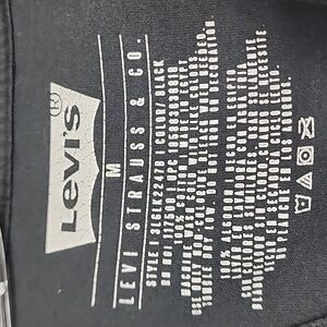 Levi's black long sleeve shirt featuring a bold red logo on the front. Perfect for casual wear everyday wear. has two small white spots on the left side of the shirt.