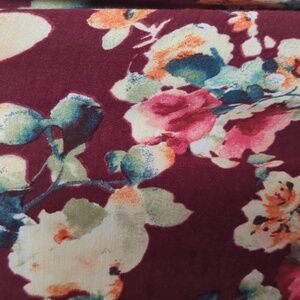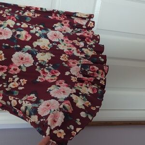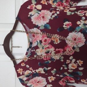 Agnes & Dora Short Sleeve Ruffle Hem Pullover Dress in Lovely Burgundy & Pink Floral Pattern