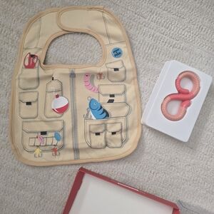 Fred Chill Baby Boutique Spill Bib Teether Set Tan Fishing Shower Gift Boy Girl