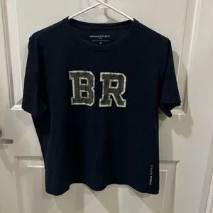 Navy short sleeve tee with 'BR' logo. Comfortable and stylish. Perfect for casual wear.