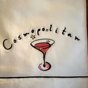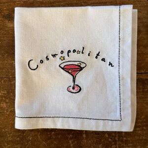 Perfect for New Year’s Eve - Girl’s Night Out - Entertaining this Set of Vintage Pottery Barn Martini Glass Embroidered White Cocktail Napkins and Bar Towel. Featuring Classic Cocktails - 100% Cotton - 10”x10” Napkins - Bar Towel 19”x28”. Crisp and Clean except for one tiny mark on Cosmopolitan Napkin noted in photo.
