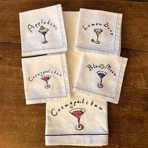 Pottery Barn Vintage Martini Embroidered Cocktail Napkins and Bar Towel