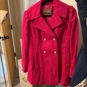 Stylish double-breasted pea coat with gold buttons. Perfect for a chic look. Bright pink! Feminine and warm! So chic!