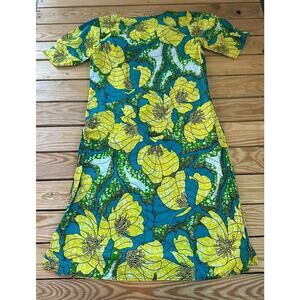 Vintage Floral Patterned Dress Size Medium Women’s Blue Yellow