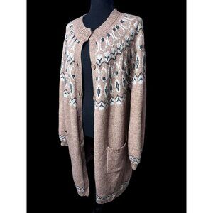 Max Edition Fair Isle Knit Cardigan Sweater Womens XL Beige Effortless cabincore