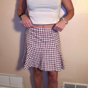 Chic Maeve Anthropologie Pink White Black Houndstooth Plaid Wool Skirt