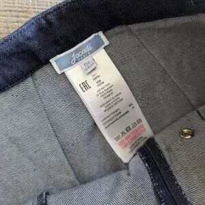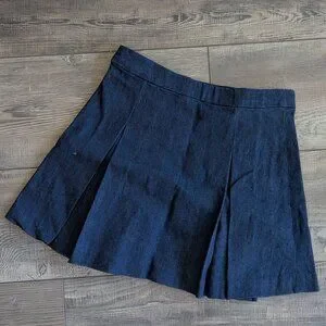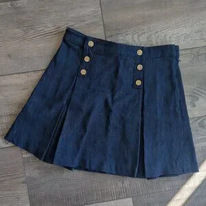 Excellent Used Condition - Jacadi Girl's Gold Snaps Pleated Schoolgirl Preppy Modern Jean Denim Skirt 8A / 128cm.