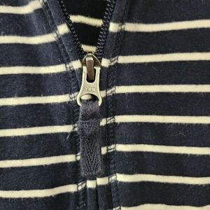 LL Bean Navy Striped Women's Ultrasoft Sweats, Full-Zip Mock-Neck Jacket Sz Med