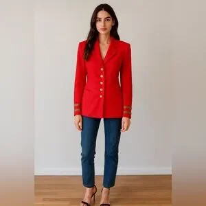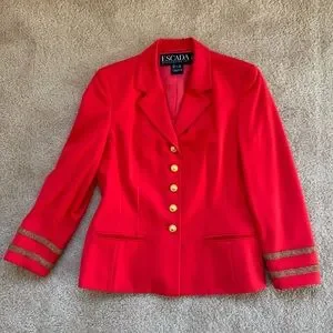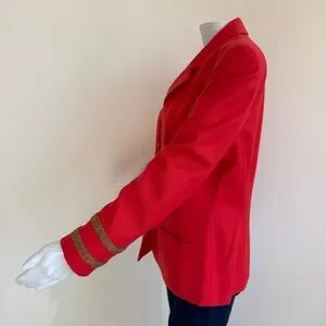 Escada Margaretha Ley Wool Vtg 80s 1980s Poppy Red Gold Nautical Blazer Jacket