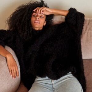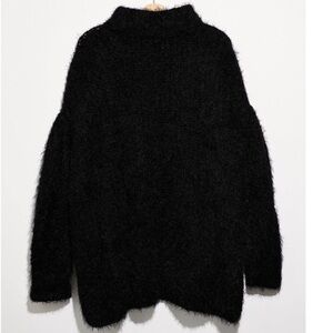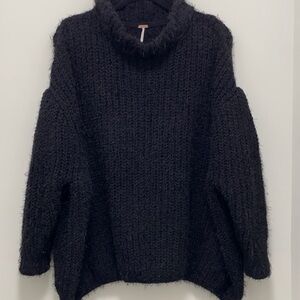 Free People Black Funnel Neck Eyelash Oversized Oasis