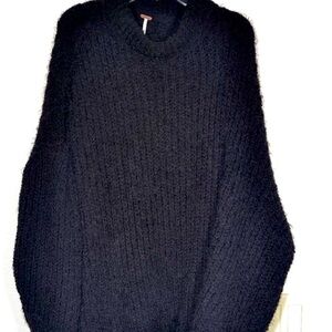 Free People Oasis Black Funnel Neck Eyelash Oversized Slouchy Sweater Tunic XL