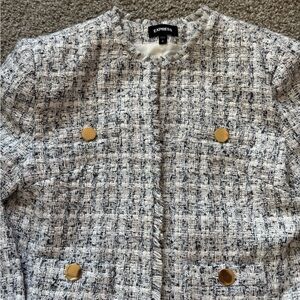 EXPRESS NEUTRAL PRINT PADDED SHOULDER TWEED BLAZER SZ L. In excellent condition, clean from a smoke-free home. Only worn once. Any questions feel free to ask. Thank