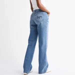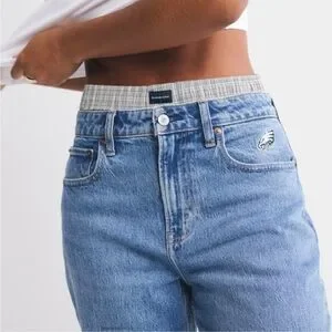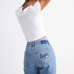 A&F NFL Curve Love High Rise 90s Relaxed Philadelphia Eagles Embroidered Jeans