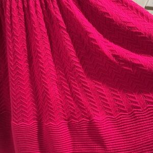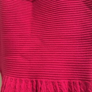 Chic red sleeveless knit dress. Perfect for casual outings, ribbed and chevron details, nice bright pink, great condition with minor piling, 💯 wool